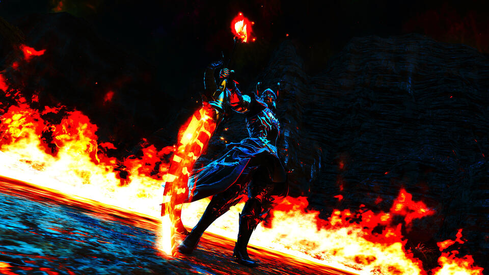 In-game weapon model: Inferno FaussarWhen Torsten embraces his Darkside fully and completely, both his form and his blade succumb to the might of Fire. The metal curves and bursts into an ever-flame that burns as a reflection of the heart wielding it. This flame cannot be doused by mere water, for it is made of Torsten's true Will and inner power. This dramatic transformation rarely occurs, but when it does it can be difficult to let go of the feelings that ignited the need to reveal it in the first place.